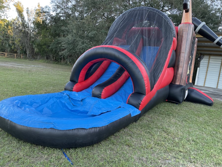The Shark Dual Lane is an awesome combo that has a jump zone and an awesome slide! The slide can be used either wet or dry! This rental books fast, so reserve this rental for your event NOW to have the best party ever!