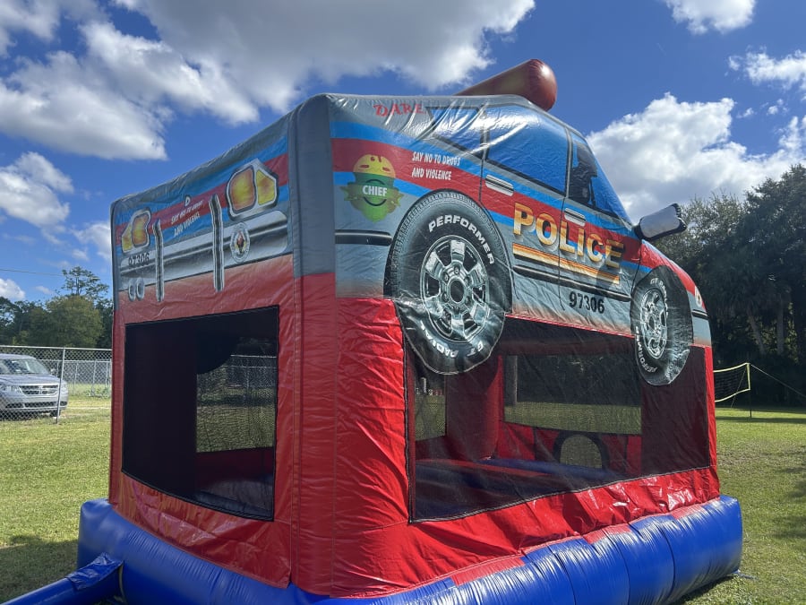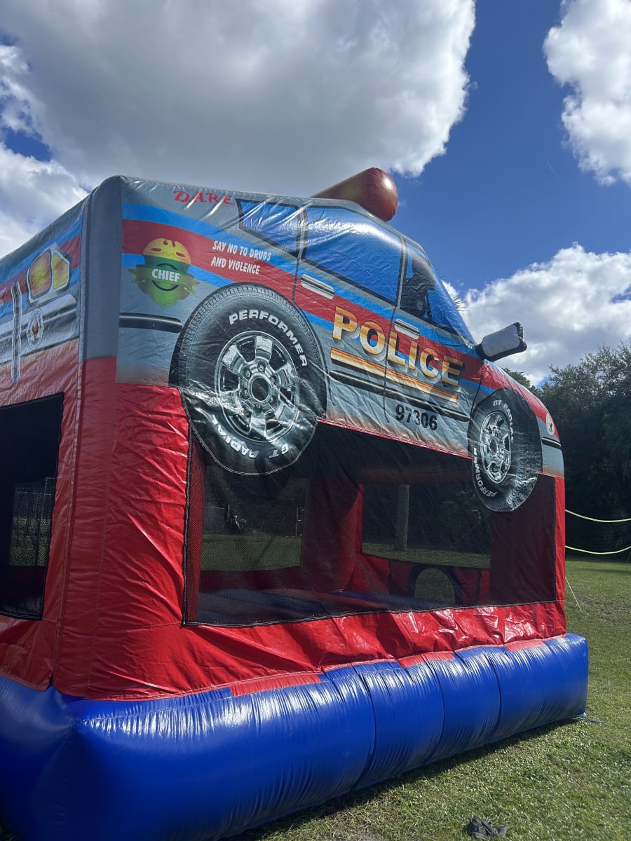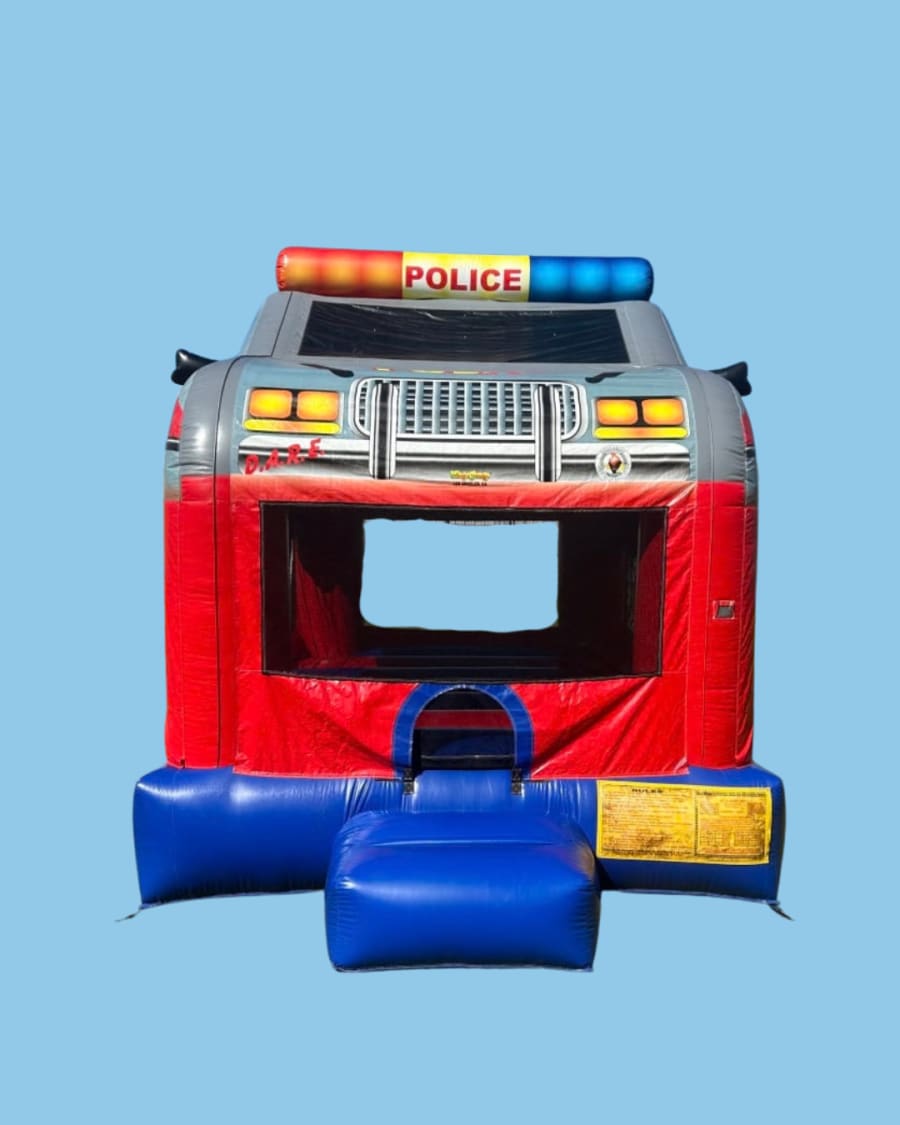 Our Police Car Bounce house is so much fun! Add this colorful bouncer to your event for guaranteed fun! All kiddos will love this fun themed unit! This awesome unit is for ages four and up! Hurry and book this amazing bounce house for your party before it is gone!!! 13x13x13
