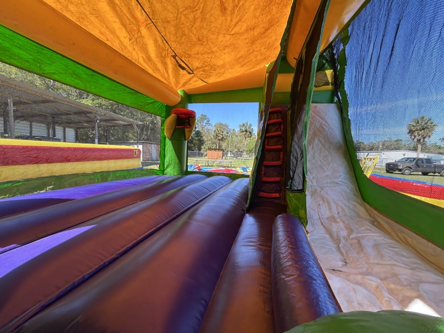 What a fun themed bounce house combo to add to your upcoming event! This Combo has so many awesome features, including netting on all 4 sides for parents to monitor kiddos while playing, a basketball hoop, and a slide inside! Add this combo to your event to bring all of the fun!