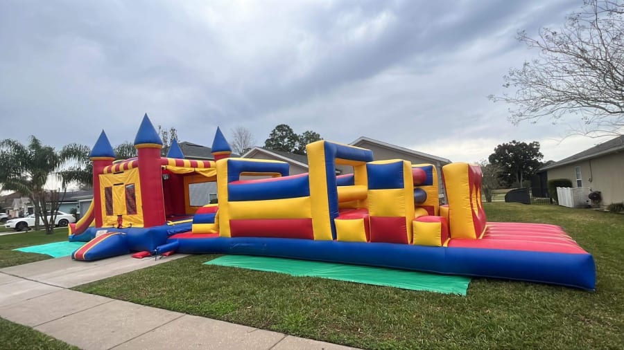 Turn your next party into a souvenir of spectacular chaos (the good kind) with the 61 ft. Ultimate Obstacle Course Combo! This towering inflatable is a family favorite — 61' L x 18' W x 15' H of slides, tunnels, and craaazy-but-safe challenges that keep kids active, laughing, and asking for “one more run.” 🎉🤸♂️