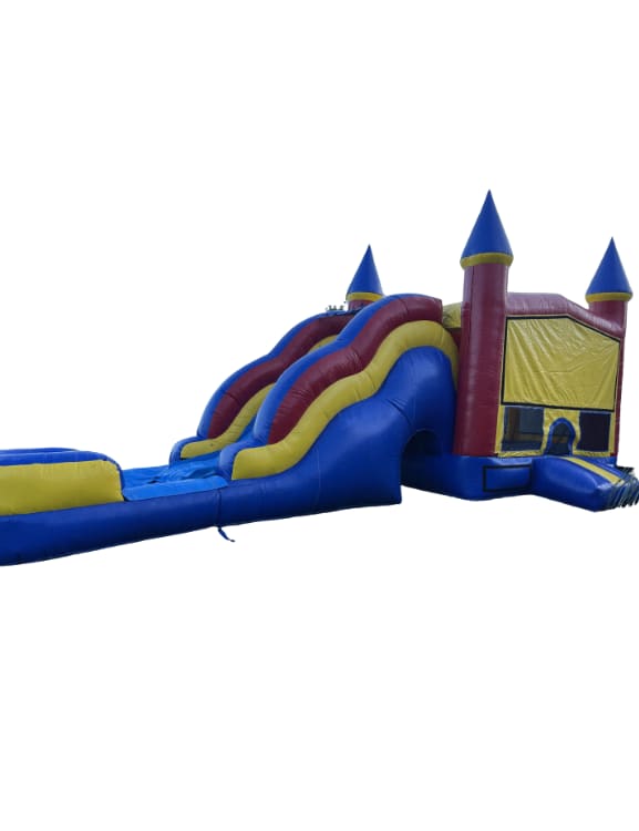 The Thang 1 is an awesome combo that has a jump zone and an awesome slide! This rental books fast, so reserve this rental for your event NOW to have the best party ever! L 32′ x W 13′ x H 15′