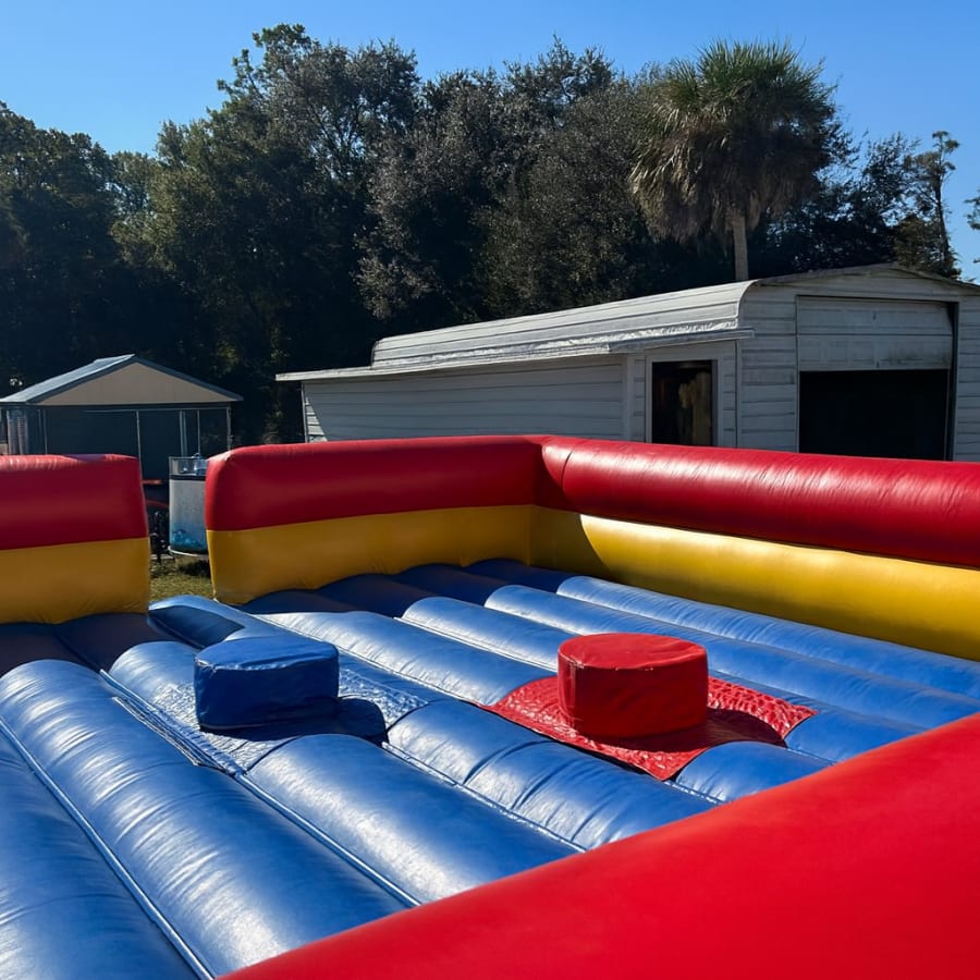 Get ready to crown the champion of backyard battles with our 20x20x5 inflatable Jousting Ring — perfect for birthday parties, family reunions, school events, or anyone with competitive relatives to entertain. ð°ðĪš The high sides keep contests contained and safe, while the sturdy platform gives a confident arena for two players to face off with foam jousting sticks (helmets recommended!).