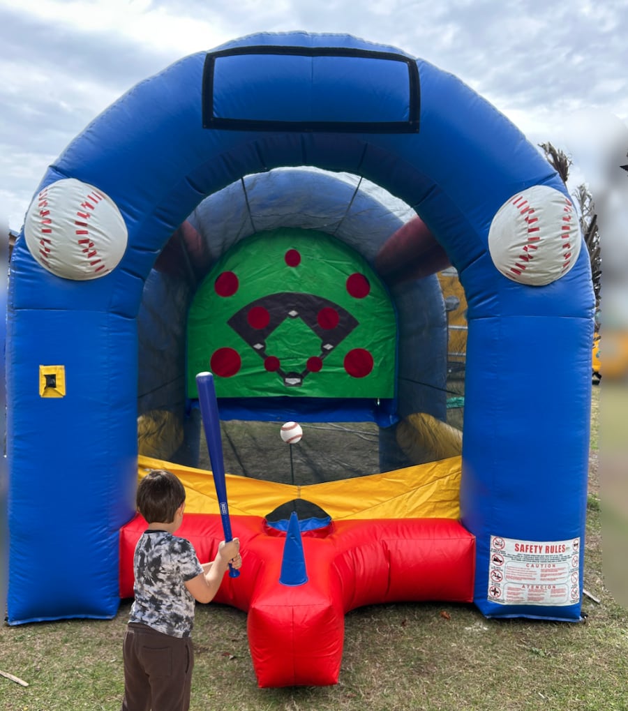 Baseball Blast is a compact, action-packed inflatable designed for players of all ages. Sized at 9x12x13 feet, it fits most backyards and event spaces. Each rental includes a wiffle bat and ball, so setup is instant and play starts quickly. Perfect for birthday parties, school events, and backyard tournaments. 🥳