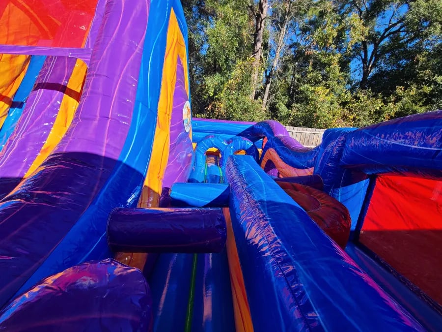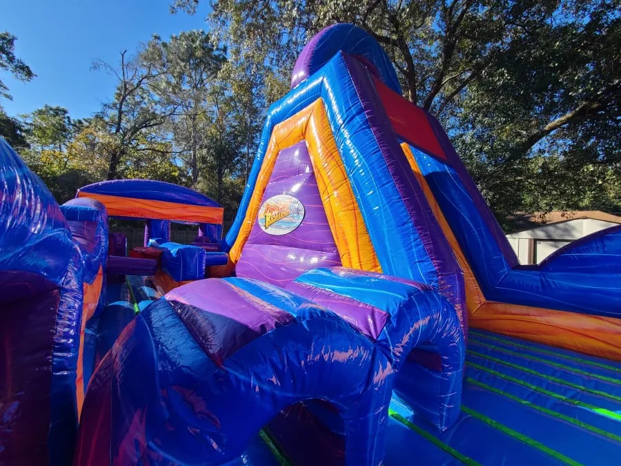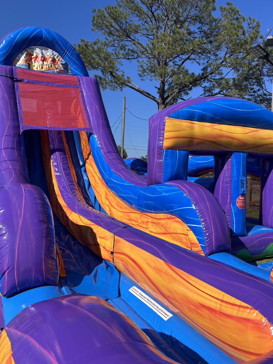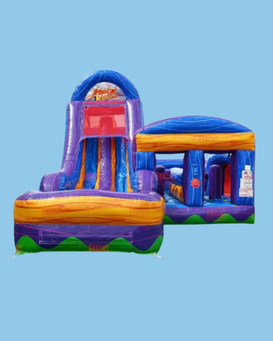 The Adrenaline Rush Tropical Express is the ultimate obstacle competition experience for two players! The slides can be used wet or dry!