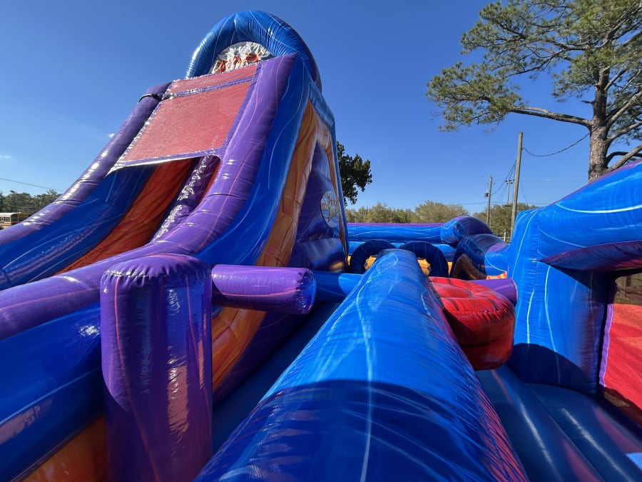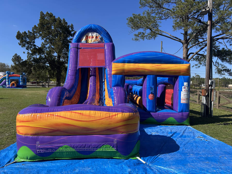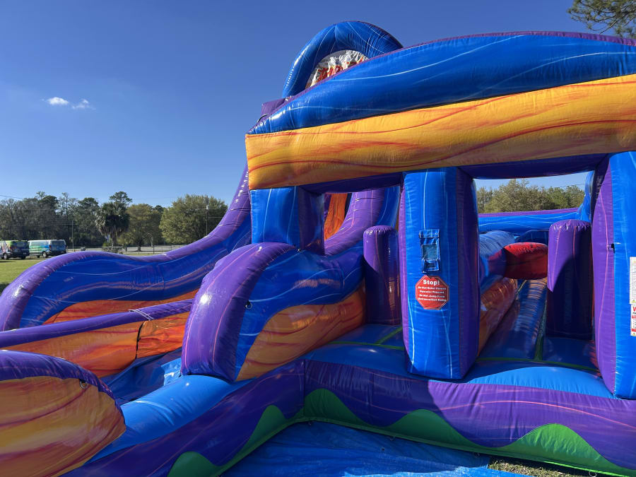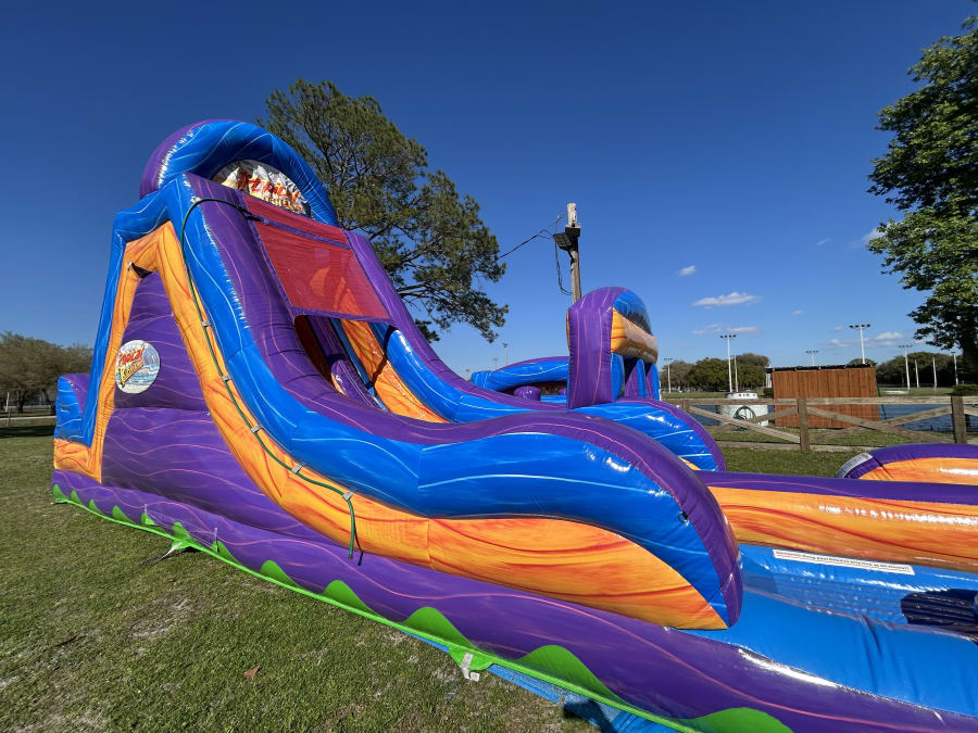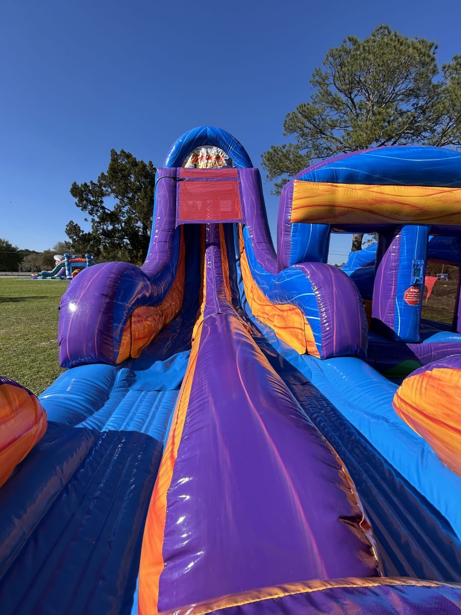 The Adrenaline Rush Tropical Express is the ultimate obstacle competition experience for two players! The slides can be used wet or dry!
