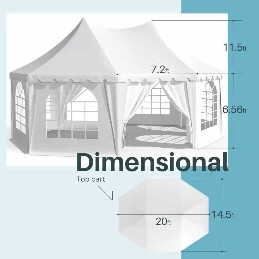 Our Octagon Tent is fully capable of holding up to 40 people. Perfect for commercial or recreational use, such as parties, weddings, backyard events, flea markets, etc.