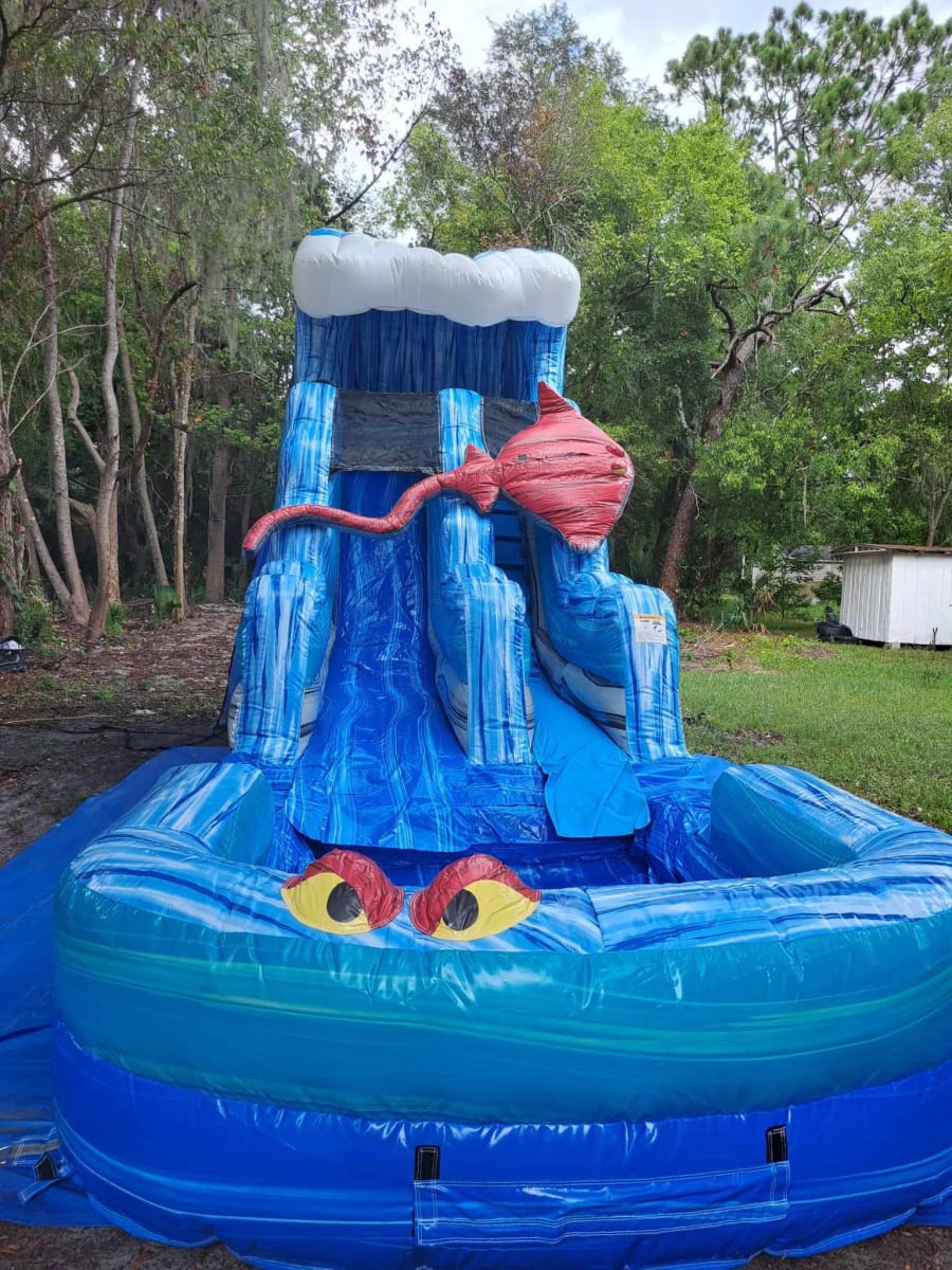 15’ Single Lane Stingray Attack Waterslide in Putnam, Clay, St Johns, Duval, Alachua, Volusia and Surrounding Counties — trusted, delivered, and set up by your friendly local crew. We serve families across the region and bring the waves to your lawn (as long as your lawn is party-ready!). 🚚💦