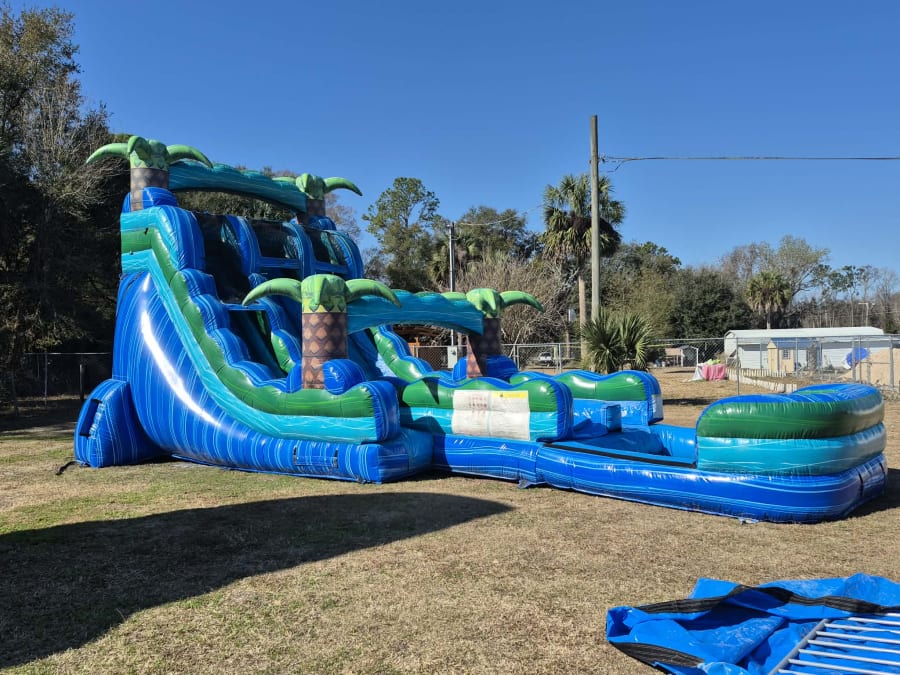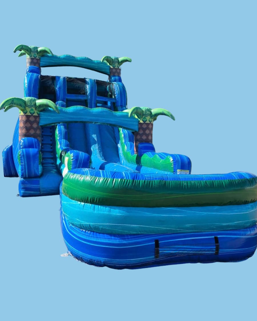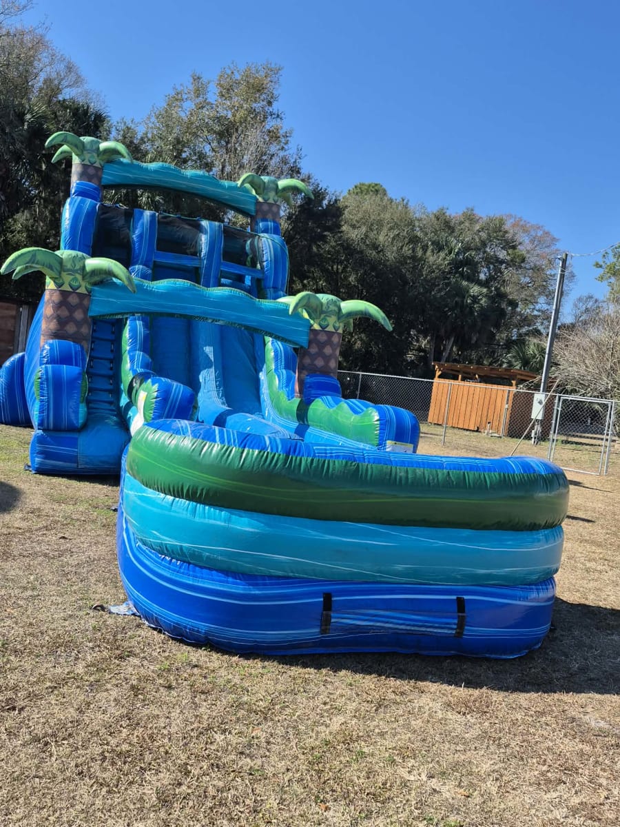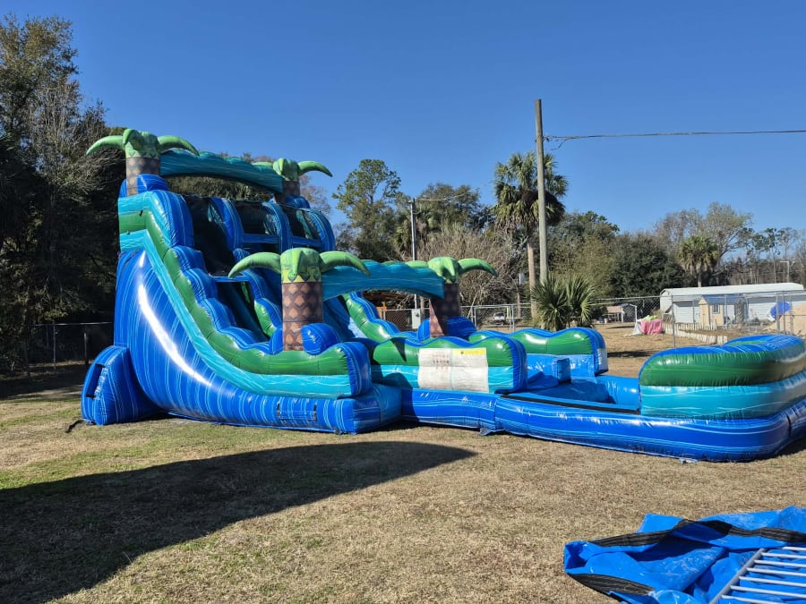 Bring a tropical thrill to your next party with the 20' Island Drop Dual Lane Water Slide. This high-energy, family-friendly attraction delivers fast slides, big splashes, and picture-perfect moments. Ideal for backyard birthday parties, school events, church picnics, and community gatherings. Book with confidence for events in Putnam, Clay, St Johns, Duval, Alachua, Volusia and surrounding Counties.