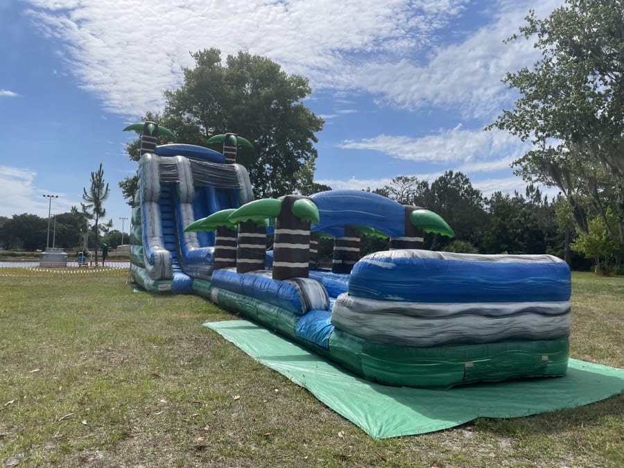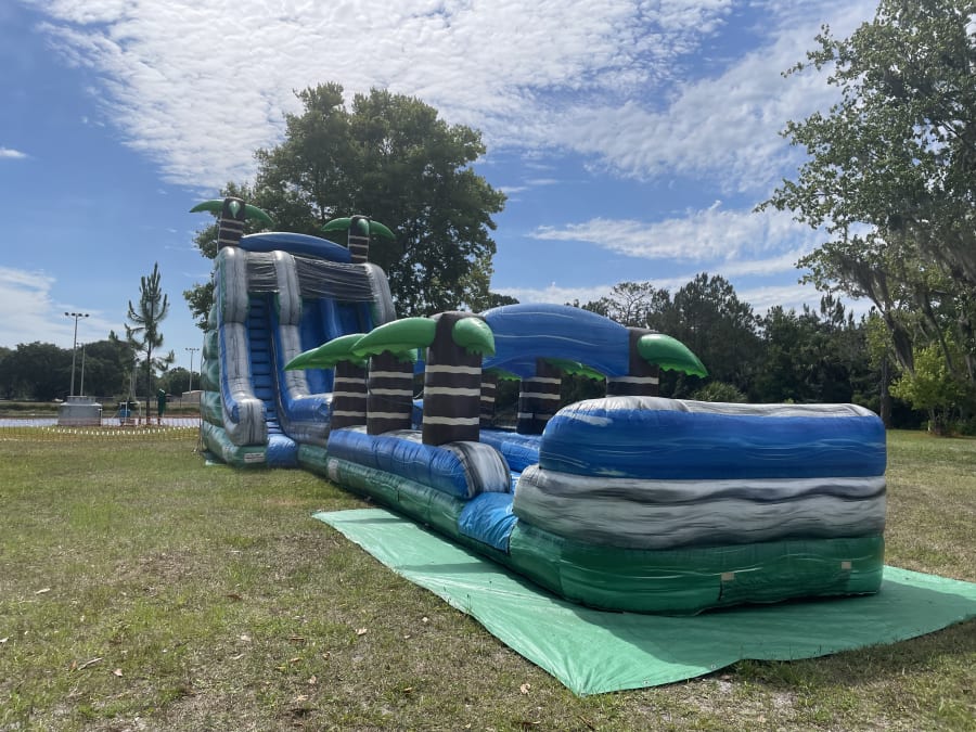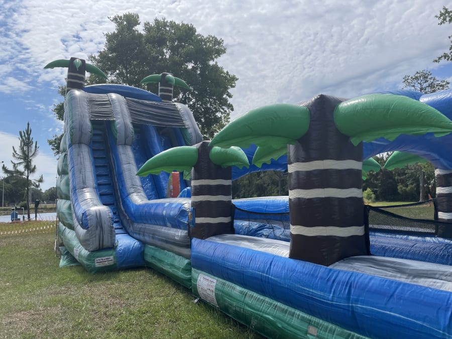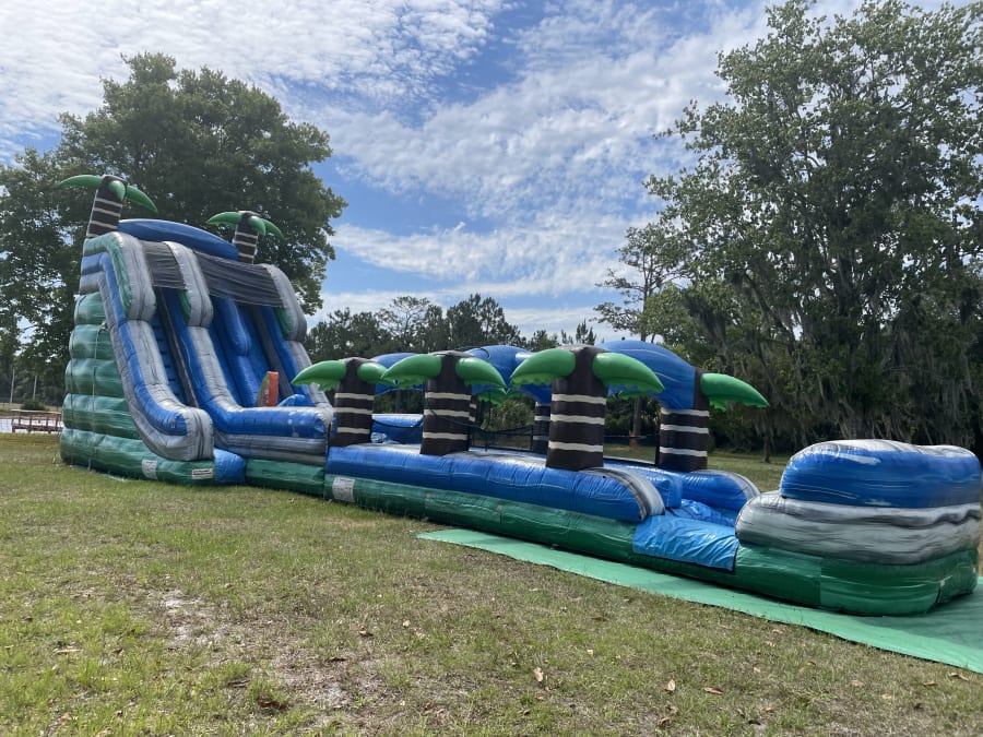 The Tropical Waterslide with Slip & Slide is one of our BIGGEST slides! This unit is made for the most epic parties! This slide is massive and will make your event the best one yet! Book NOW before it is gone!!